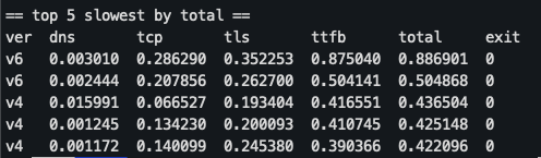 그리고 그 연장선에서 v4/v6 연결 지연을 아주 작게나마 직접 측정해봤다.