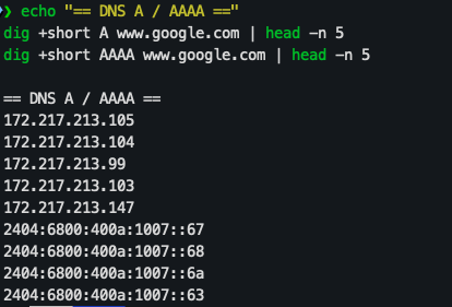 듀얼스택 환경에서는 클라이언트가 v4/v6를 섞어서 시도(지연이 있으면 우회)하기 때문에 사용자 체감만으로는 프로토콜 차이를 잡기 어렵다. 그래서 이번에는 curl의 `-4/-6` 옵션으로 프로토콜을 고정해서 경로/품질 차이가 어떤 형태(특히 tail: 느린 케이스)로 드러나는지 확인했다.