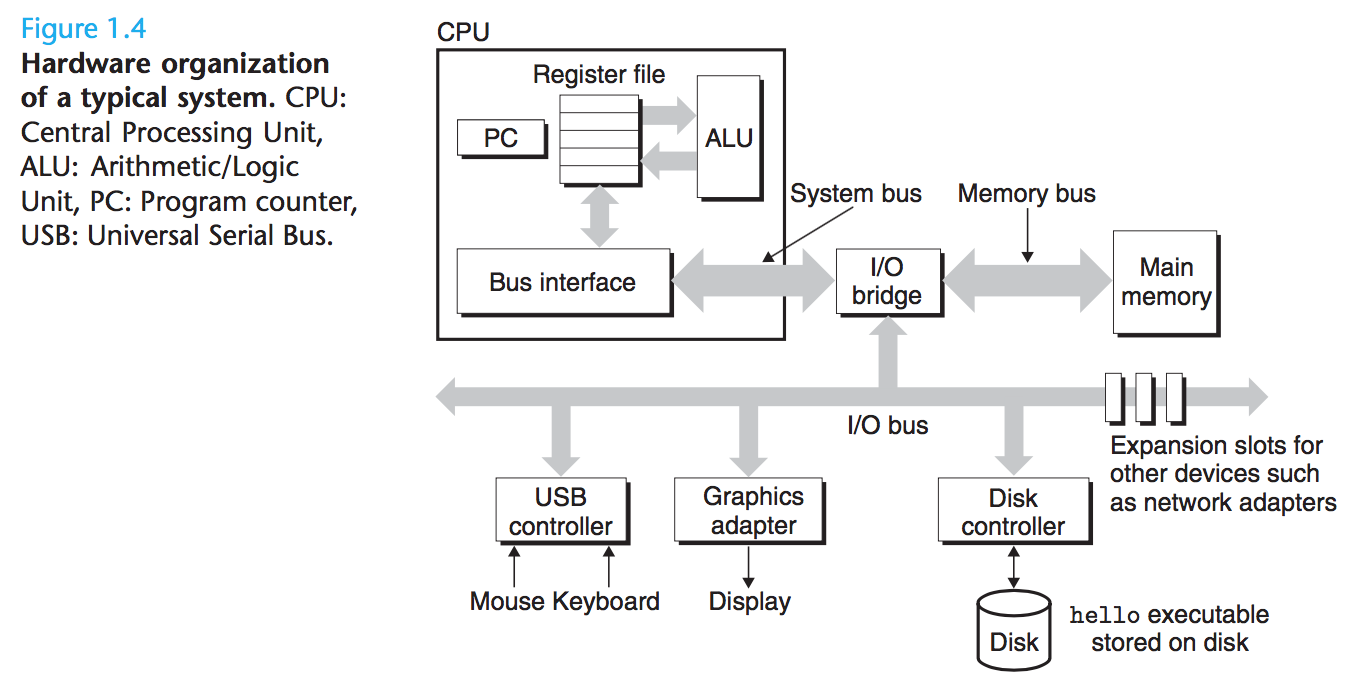 CSAPP(Computer Systems: A Programmer's Perspective) 책의 1.4 섹션은 컴퓨터 시스템의 기본 작동 원리를 설명합니다. hello.c 프로그램을 예로 들어 소스 코드가 컴파일되어 실행 파일로 변환된 후, 쉘이 이를 로드하고 CPU가 메모리에서 명령어를 읽어 실행하는 과정을 다룹니다. 이 포스트는 해당 섹션을 읽고 하드웨어 구조, 소프트웨어 요소 등에 관해 개인적으로 정리한 글입니다.
